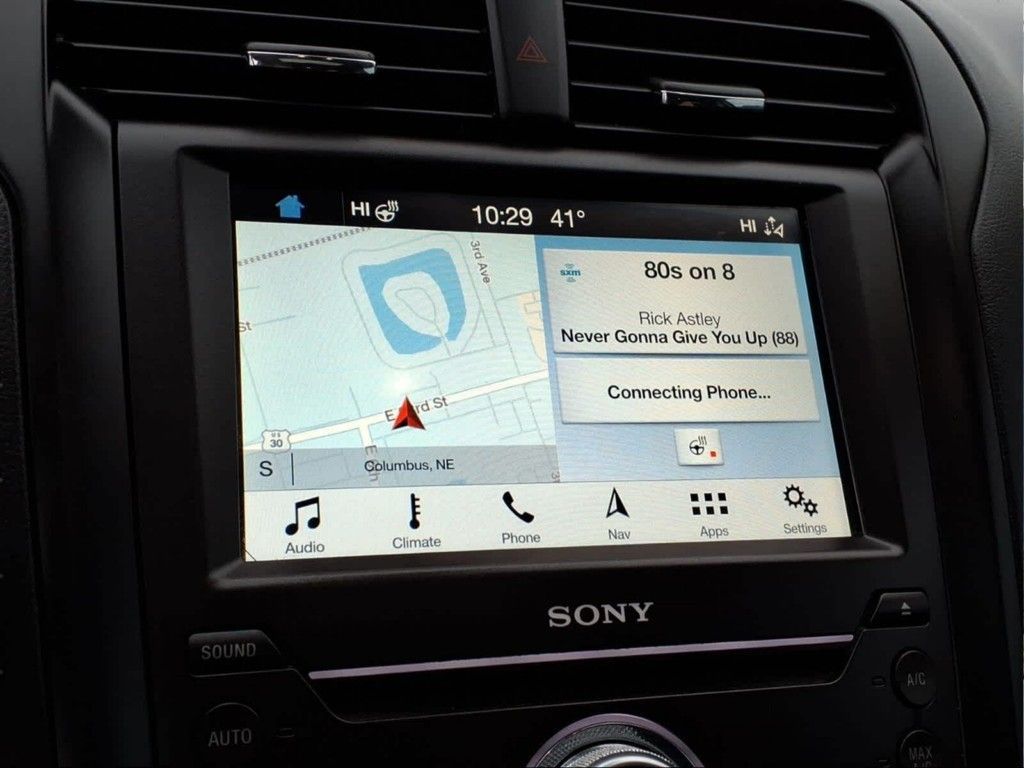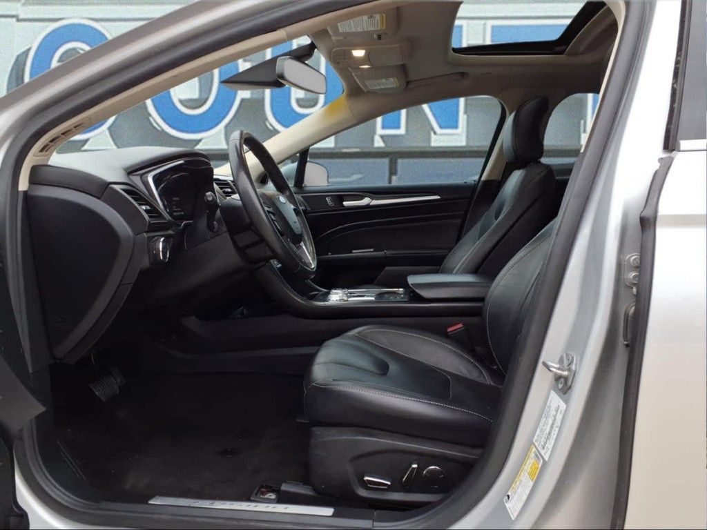 Leather Seats, Navigation, Sunroof, Heated Driver Seat, Cooled Driver Seat, Back-Up Camera, Hybrid, Premium Sound System, Satellite Radio, iPod/MP3 Input, Onboard Communications System, Aluminum Wheels, Remote Engine Start, Dual Zone A/C, Smart Device Integration Rear Spoiler, MP3 Player, Remote Trunk Release, Keyless Entry, Steering Wheel Controls. Ford Titanium with Ingot Silver exterior and Ebony interior features a 4 Cylinder Engine with 188 HP at 6000 RPM*.