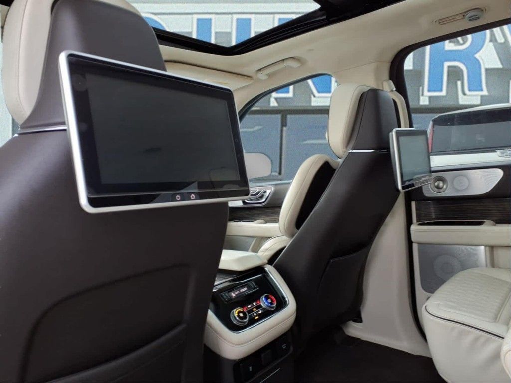2ND ROW HEATED DUAL CAPTAINS CHAIRS W/POWERFOLD tilt and slide functionality and 40/pass-thru/40 seat structure, TRANSMISSION: 10-SPEED AUTOMATIC W/SELECTSHIFT paddle activation (STD), ENGINE: 3.5L TWIN-TURBOCHARGED V6 (STD). Lincoln Black Label with Pristine White exterior and Alpine interior features a V6 Cylinder Engine with 450 HP at 5500 RPM*.