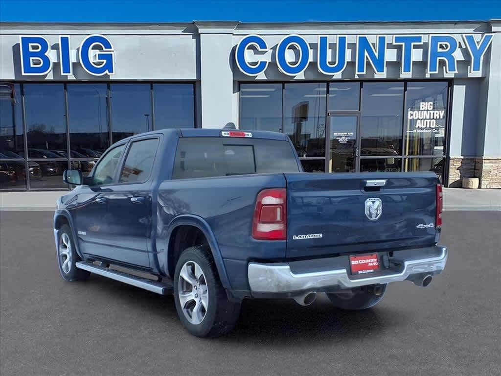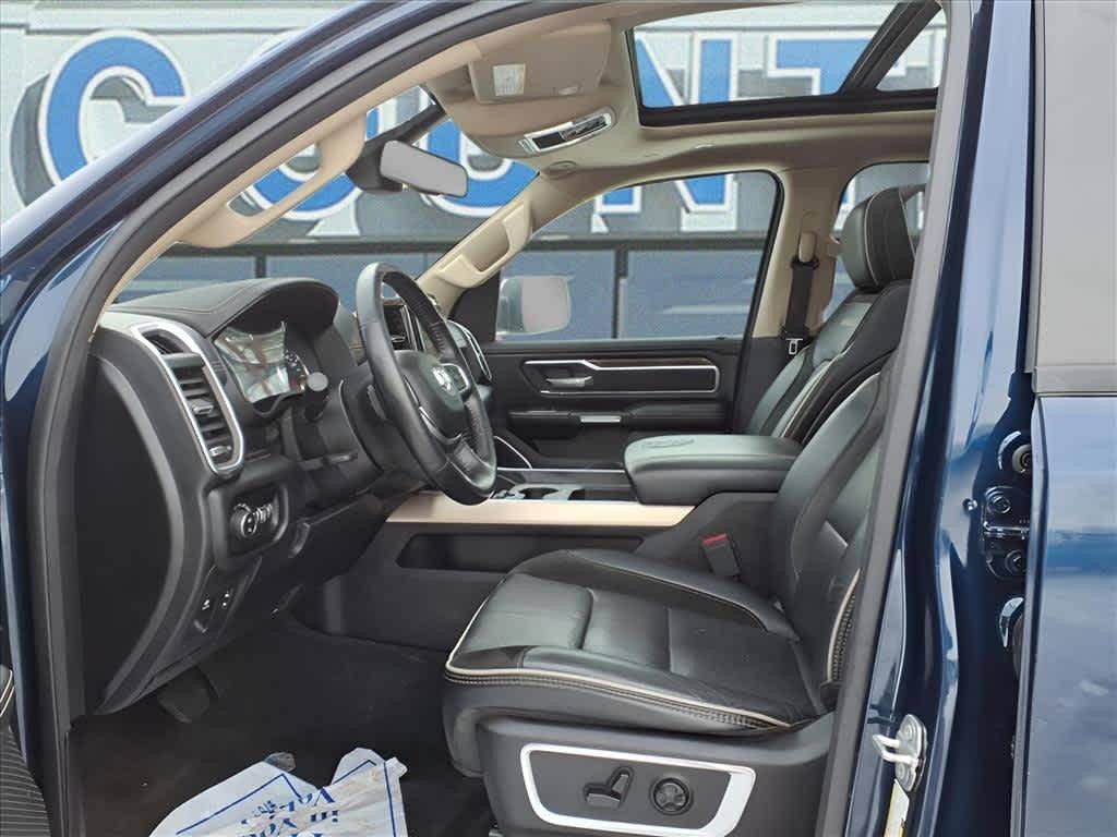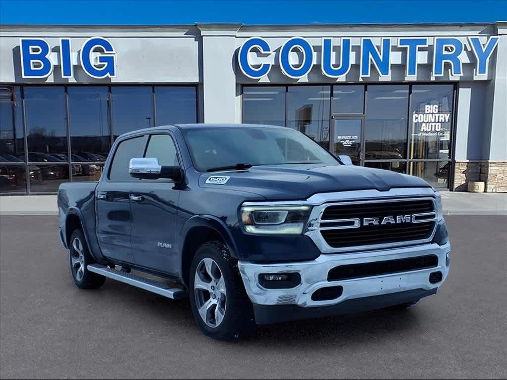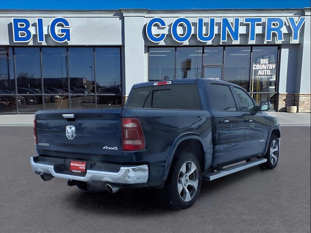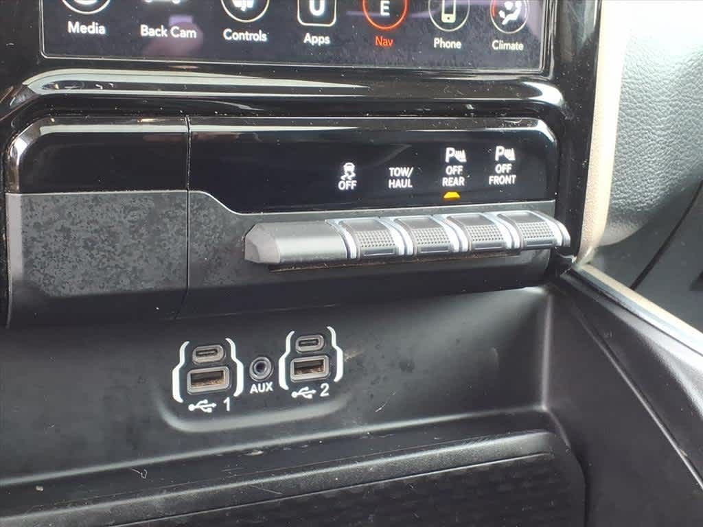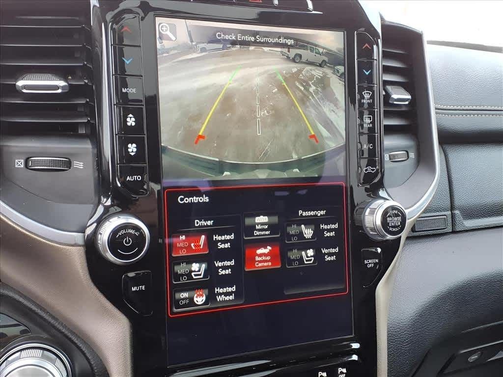 RADIO: UCONNECT 12 W/NAVIGATION SiriusXM Traffic Plus, USB Host Flip, Disassociated Touchscreen Display, HD Radio, For Details, Visit DriveUconnect.com, 1-Yr SiriusXM Guardian Trial, 12 Touchscreen Display, GPS Navigation, SiriusXM Travel Link, 4G LTE Wi-Fi Hot Spot, SiriusXM w/360L, LARAMIE LEVEL 1 EQUIPMENT GROUP Remote Tailgate Release, Auto High Beam Headlamp Control, Blind Spot & Cross Path Detection, Rain Sensitive Windshield Wipers, ParkSense Front/Rear Park Assist w/Stop, Tailgate Ajar Warning Lamp, Foam Bottle Insert (Door Trim Panel), Rear 60/40 Folding Split Recline Seat, ENGINE: 5.7L V8 HEMI MDS VVT ETORQUE Active Noise Control System, Heavy Duty Engine Cooling, GVWR: 7,100 lbs, Dual Rear Exhaust w/Bright Tips, Hemi Badge, 23 Gallon Fuel Tank, 18 Aluminum Spare Wheel, DUAL-PANE PANORAMIC SUNROOF LED Dome/Reading Lamp, Dome Dual LED Reading Lamp, WHEELS: 20 X 9 PREMIUM PAINT/POLISHED Tires: 275/55R20 OWL All Season, BLACK, LEATHER TRIMMED BUCKET SEATS Bucket Seats, Full Length Upgraded Floor Console, WHEEL TO WHEEL SIDE STEPS, TRANSMISSION: 8-SPEED AUTOMATIC (8HP75). Ram Laramie with Patriot Blue Pearlcoat exterior and Black interior features a 8 Cylinder Engine with 305 HP at 6400 RPM*.