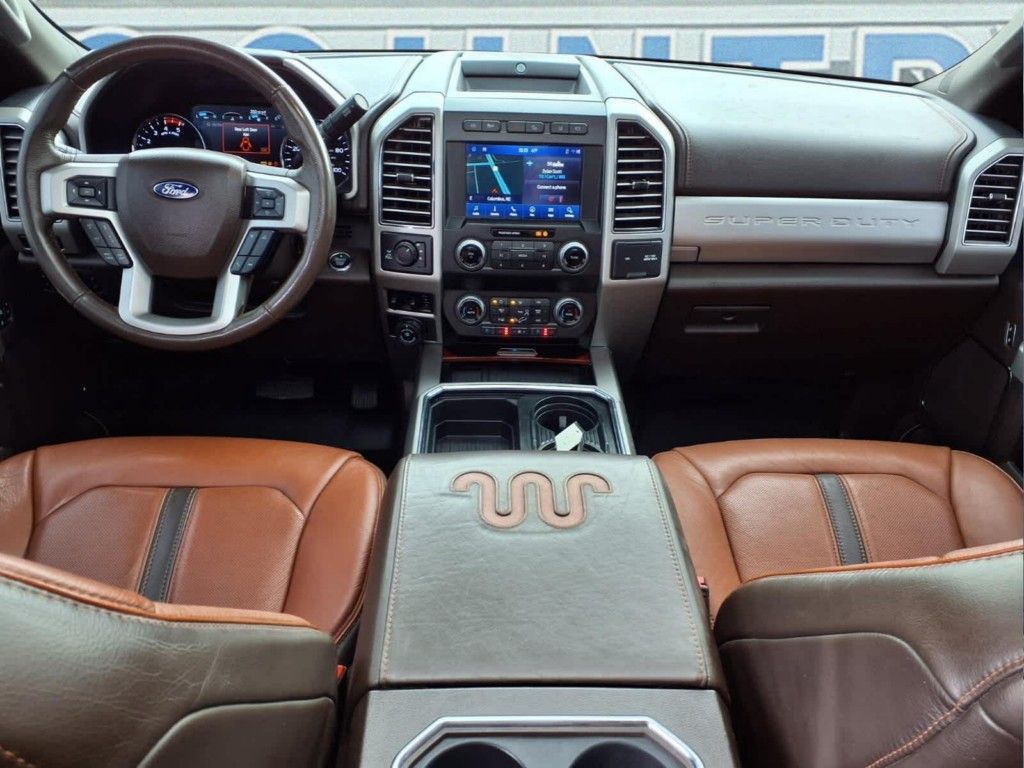 ENGINE: 6.7L 4V OHV POWER STROKE V8 TURBO DIESEL B20 manual push-button engine-exhaust braking and intelligent oil-life monitor, 240 Amp Alternator, 34 Gallon Fuel Tank, 3.31 Axle Ratio, Dual 78-AH 750 CCA Batteries, TREMOR OFF-ROAD PACKAGE unique front springs - ride height increase, rear electronic locking differential, front limited slip differential, performance front and rear shock absorbers, unique front air dams w/approach angle improvement, transfer case and axle water fording vent tubes, rock crawl mode and trail control mode, Tremor Off-Road Decal, Transfer Case & Fuel Tank Skid Plates, Tires: LT285/75R18E BSW Automatic Transmission, Off-road, LT285/75R18E BSW Spare Tire, Textured Matte Finish Off-Road Running Boards, Conventional Road Spare Wheel, Wheels: 18 Low-Gloss Black Painted Aluminum, Body-Color Wheellip Moldings, Lane-Keeping Alert, KING RANCH ULTIMATE PACKAGE Tailgate Step & Handle, Quad Beam LED Headlamps & LED Taillamps, LED fog lamps and LED Center High-Mounted Stop Lamp (CHMSL), Power-Deployable Running Boards, Twin Panel Power Moonroof, map lights and moonroof switches, Multi-Contour Seats, PRO TRAILER BACKUP ASSIST - HIGH CAPACITY Note: Salespersons Portfolio or Trailer Towing Guide should be consulted for specific trailer towing or camper limits and corresponding required equipment, axle ratios and model availability, See Supplemental Reference for vehicle height consideration, Ultimate Trailer Tow Camera System, rear view camera, 360 degree camera system, rear CHMSL camera, trailer reverse guidance and LED center high-mounted stop lamp, High Capacity Trailer Tow Package, increased GCW from 23,500 lbs, to 30,000 lbs and upgraded axle, Note: Salespersons Portfolio or Trailer Towing Guide should be consulted for specific trailer towing or camper limits and corresponding required equipment, axle ratios and model availability, See Supplemental Reference for vehicle height, ADAPTIVE CRUISE CONTROL & COLLISION WARNING brake support, TOUGH BED SPRAY-IN BEDLINER tailgate-guard, black box bed tie-down hooks and black bed attachment bolts, HEATED REAR SEATS, TRANSMISSION: TORQSHIFT 10-SPEED AUTOMATIC SelectShift and selectable drive modes: normal, tow/haul, eco, deep sand/snow and slippery.
