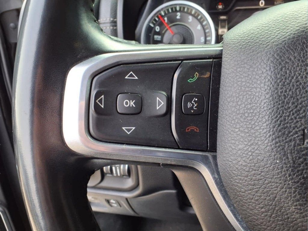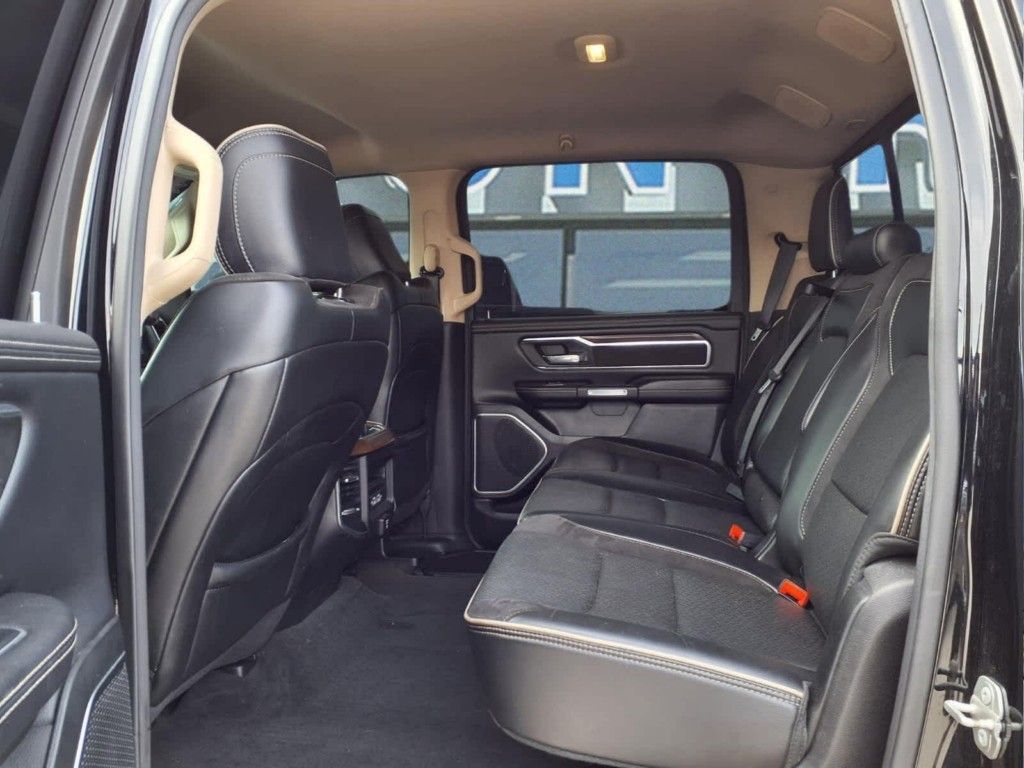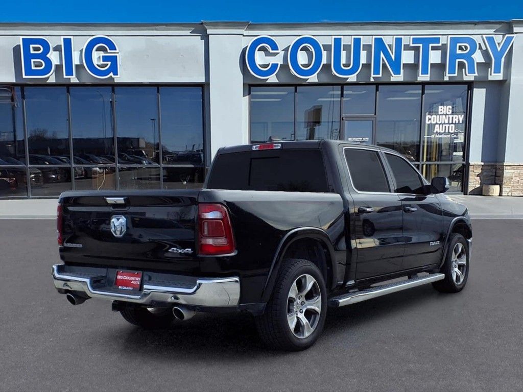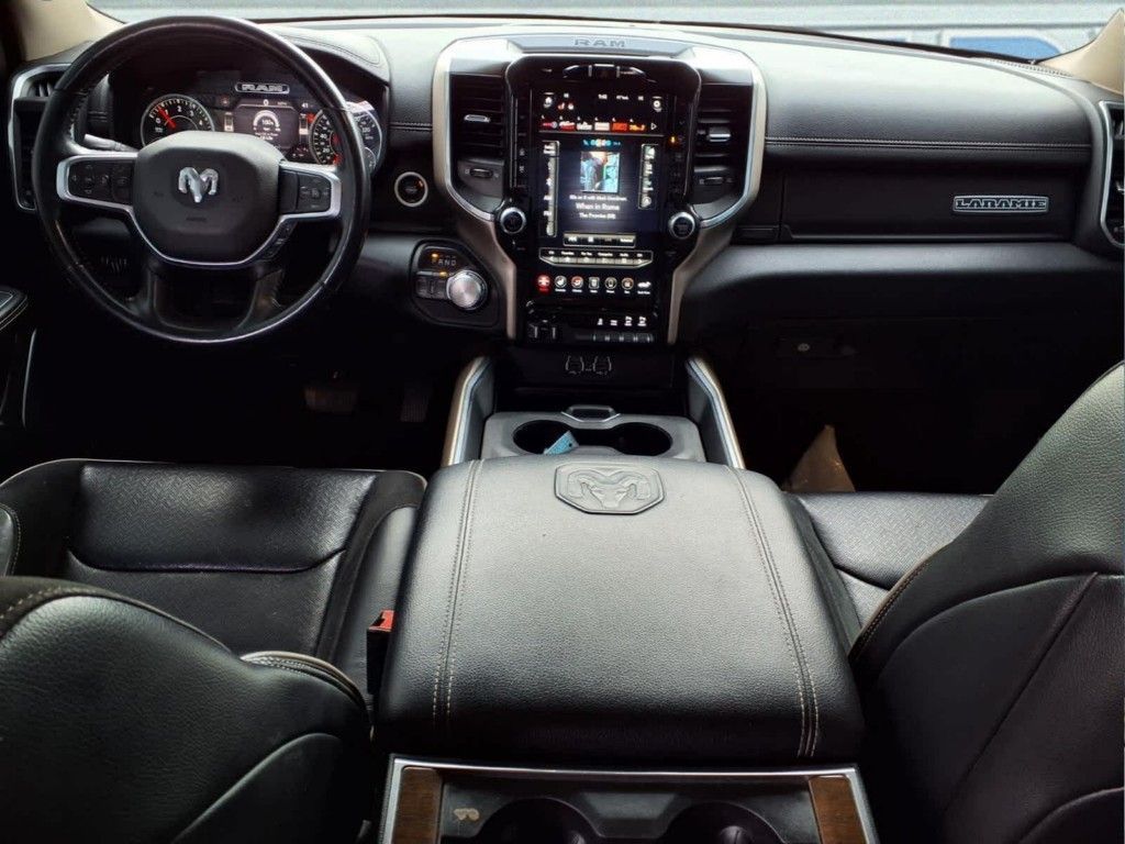 ENGINE: 5.7L V8 HEMI MDS VVT Active Noise Control System, Heavy Duty Engine Cooling, GVWR: 7,100 lbs, Dual Rear Exhaust w/Bright Tips, HEMI Badge, 220 Amp Alternator, RADIO: UCONNECT 12 W/NAVIGATION SiriusXM Traffic Plus, USB Host Flip, Disassociated Touchscreen Display, HD Radio, For Details, Visit DriveUconnect.com, 1-Yr SiriusXM Guardian Trial, 12 Touchscreen Display, GPS Navigation, SiriusXM Travel Link, 4G LTE Wi-Fi Hot Spot, SiriusXM w/360L, LARAMIE LEVEL 1 EQUIPMENT GROUP Remote Tailgate Release, Auto High Beam Headlamp Control, Blind Spot & Cross Path Detection, Rain Sensitive Windshield Wipers, ParkSense Front/Rear Park Assist w/Stop, Tailgate Ajar Warning Lamp, Foam Bottle Insert (Door Trim Panel), Rear 60/40 Folding Split Recline Seat, Auto Dimming Exterior Passenger Mirror, WHEELS: 20 X 9 PREMIUM PAINT/POLISHED Tires: 275/55R20 OWL All Season, CHROME APPEARANCE GROUP Chrome Tow Hooks, Wheel to Wheel Side Steps, Bright Day Light Opening Moldings, BLACK, LEATHER TRIMMED BUCKET SEATS Bucket Seats, Center Console Parts Module, Full Length Upgraded Floor Console, ANTI-SPIN DIFFERENTIAL REAR AXLE, TRANSMISSION: 8-SPEED AUTOMATIC (8HP75). Ram Laramie with Diamond Black Crystal Pearlcoat exterior and Black interior features a 8 Cylinder Engine with 305 HP at 6400 RPM*.