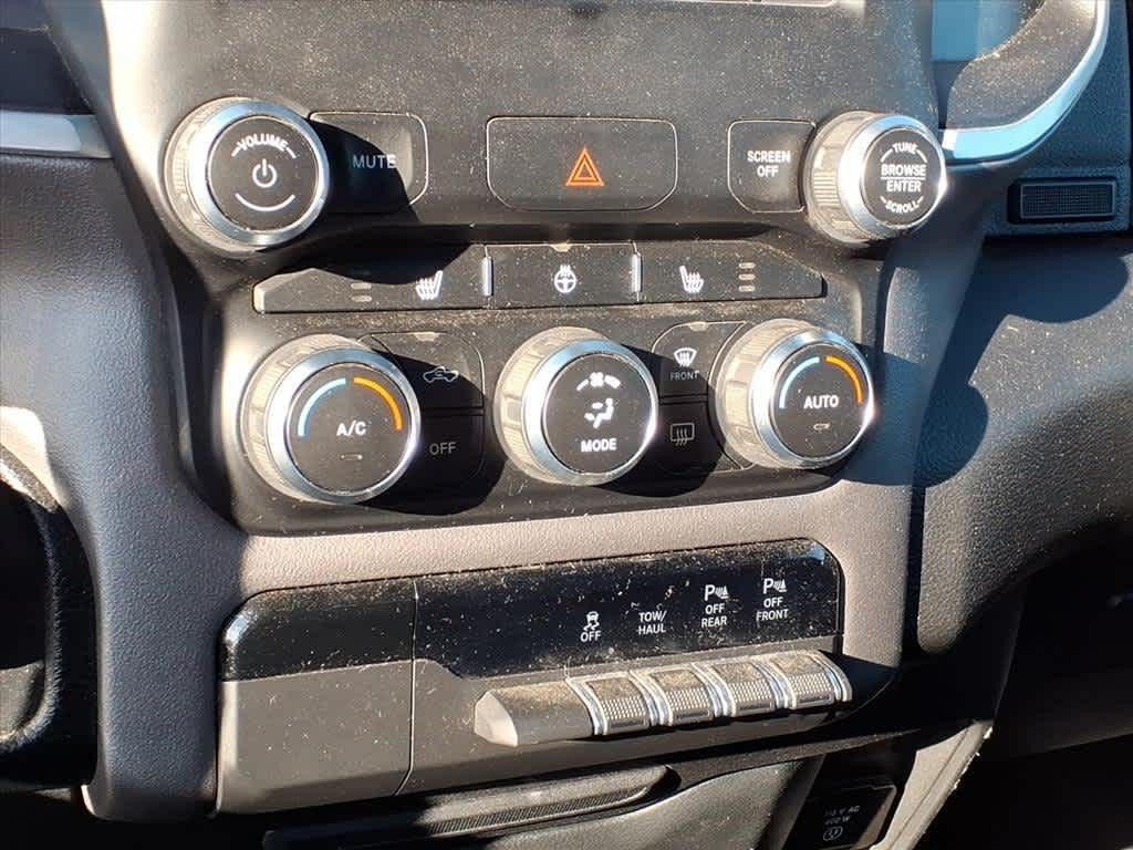 BIG HORN LEVEL 2 EQUIPMENT GROUP Google Android Auto??, SiriusXM Radio Service, Bluetooth?? Handsfree Phone & Audio, USB Host Flip, Rear Window Defroster, Integrated Center Stack Radio, ParkSense Front/Rear Park Assist w/Stop, Rear View Auto Dim Mirror, For Details, Visit DriveUconnect.com, Power Adjustable Pedals, For More Info, Call 800-643-2112, Rear Power Sliding Window, Rear Dome w/On/Off Switch Lamp, Connectivity - US/Canada, Glove Box Lamp, 4G LTE Wi-Fi Hot Spot, 115V Auxiliary Rear Power Outlet, Media Hub w/2 Charge Only USBs, Exterior Mirrors w/Heating Element, Power 8-Way Driver Seat, Auto Dim Exterior Driver Mirror, Heated Front Seats, Radio: Uconnect 5 W w/8.4 Display, Heated Steering Wheel, 8.4 Touchscreen Display, Class IV Receiver Hitch, Security Alarm, Black Premium Power, TRANSMISSION: 8-SPEED AUTOMATIC (850RE) (STD), ENGINE: 3.6L V6 24V VVT ETORQUE UPG I (STD). Ram Big Horn with Bright White Clearcoat exterior and Diesel Gray/Black interior features a V6 Cylinder Engine with 305 HP at 6400 RPM*.