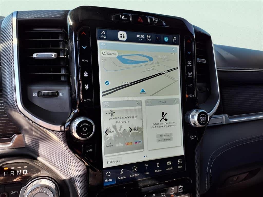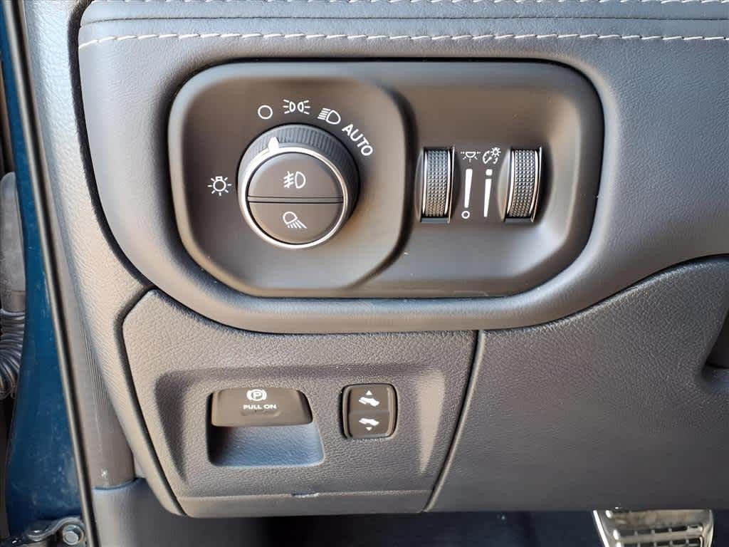 LIMITED LEVEL 1 EQUIPMENT GROUP Adaptive Cruise Control w/Stop & Go, Surround View Camera System, Head Up Display, Parallel & Perp Park Assist w/Stop, LED CHMSL Lamp, Tailgate Ajar Warning Lamp, Ventilated Rear Seats, Pedestrian Emergency Braking, Digital Rearview Mirror, Lane Keep Assist, ENGINE: 3.0L V6 TURBO DIESEL GEN 3 Secondary Active Grille Shutters, 800 Amp Maintenance Free Battery, EcoDiesel Badge, 250 Amp Alternator, GVWR: 7,200 lbs, Thermal Rear Axle, LIMITED 10TH ANNIVERSARY EDITION Multi-Function Tailgate, harman/kardon?? 19 Speaker Premium Sound, Rotary Shifter-Jeweled, Suede Headliner, Instrument Cluster Theme 8, MOPAR 4 Adjustable Cargo Tie-Down Hooks, Tailgate Ajar Warning Lamp, MOPAR Deployable Bed Step Center Mount, MOPAR Bright Pedal Kit, DUAL-PANE PANORAMIC SUNROOF LED Dome/Reading Lamp, Dome Dual LED Reading Lamp, ANTI-SPIN DIFFERENTIAL REAR AXLE, TRANSMISSION: 8-SPEED AUTOMATIC (8HP75) (DFV). Ram Limited with Patriot Blue Pearlcoat exterior and Indigo/Sea Salt interior features a V6 Cylinder Engine with 395 HP at 5600 RPM*.