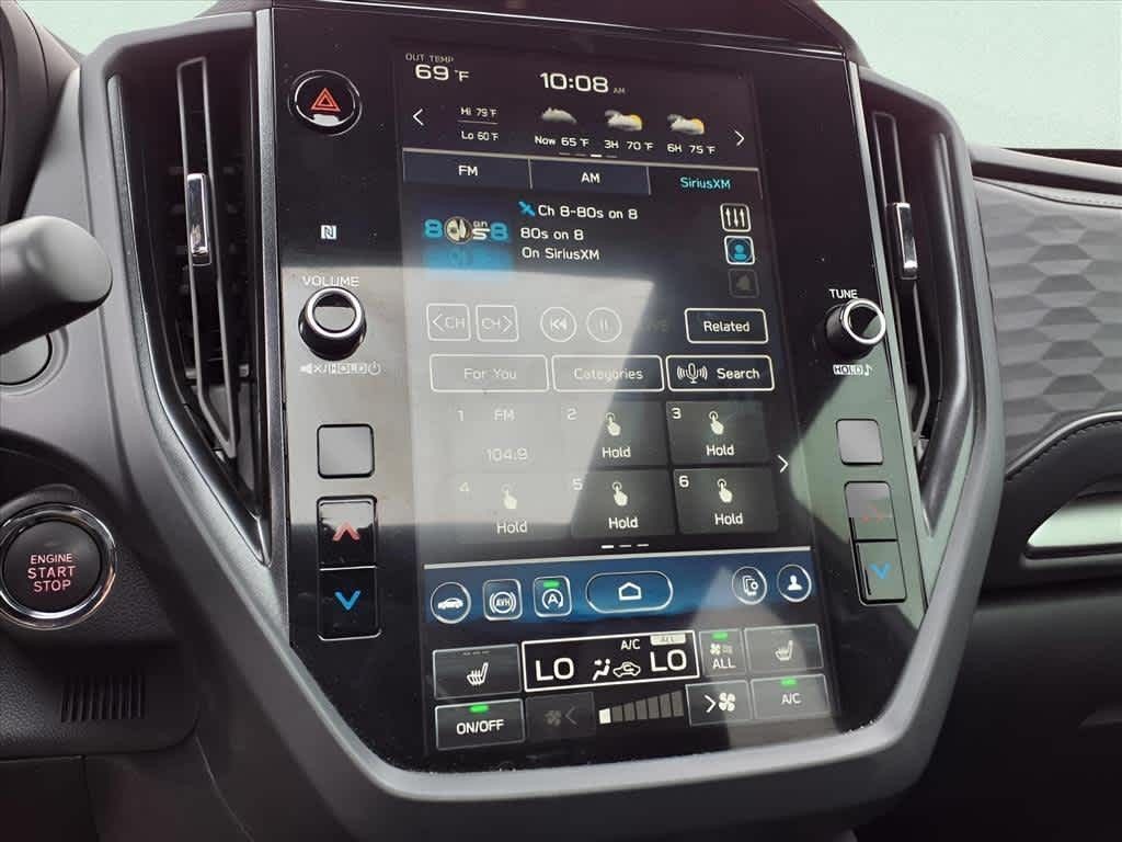 Sunroof, Panoramic Roof, All Wheel Drive, Heated Driver Seat, Back-Up Camera, Satellite Radio, iPod/MP3 Input, Onboard Communications System, Aluminum Wheels, Keyless Start, Dual Zone A/C, Brake Actuated Limited Slip Differential, Lane Keeping Assist, WiFi Hotspot, Apple CarPlay?? Rear Spoiler, MP3 Player, Privacy Glass, Keyless Entry, Steering Wheel Controls. Subaru Premium with River Rock Pearl exterior and Black interior features a 4 Cylinder Engine with 180 HP at 5800 RPM*.