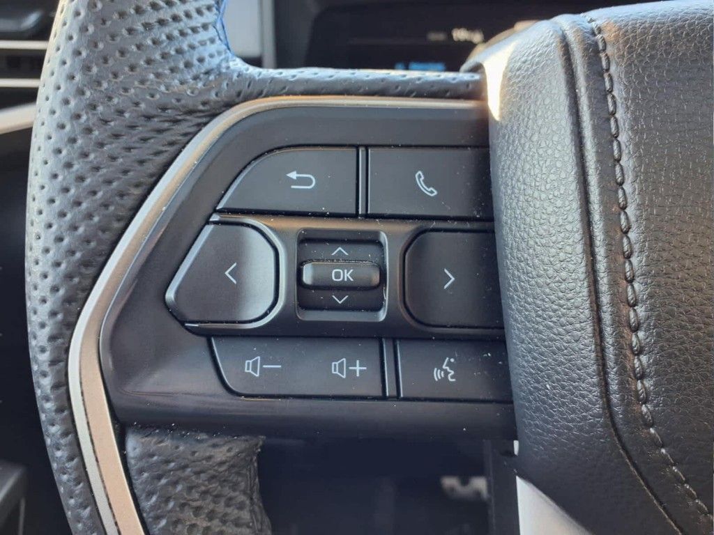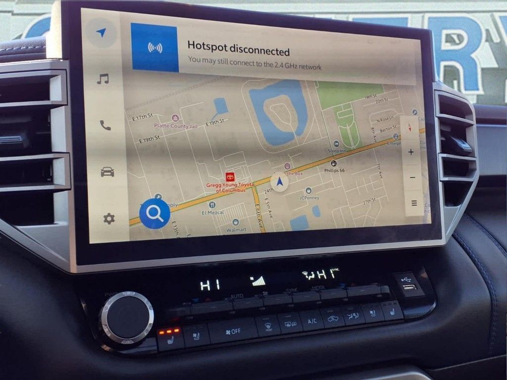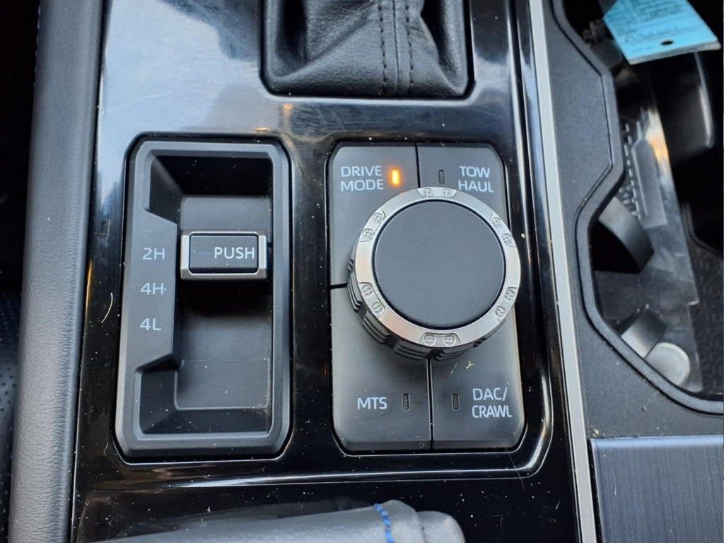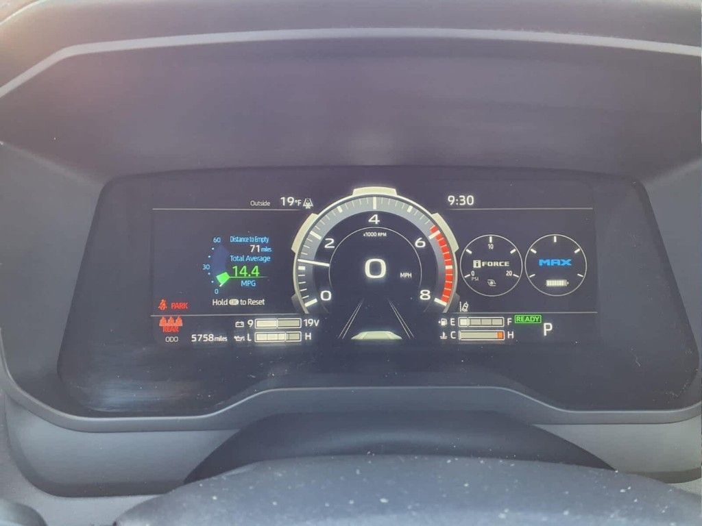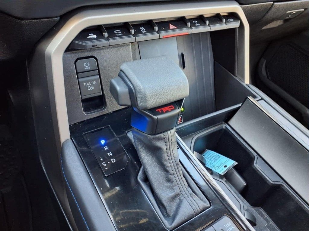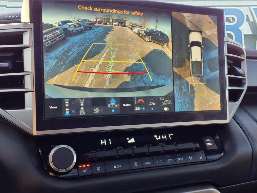 TRD grille, TRD off-road suspension, skid plates, TRD leather shift knob, electronic rear differential lock and Multi-Terrain Select (MTS), Wheels: 20 Black Alloy, Tires: P265/60R20 All-Terrain, Front & Rear Mud Guards, Multi-Terrain Back Monitor, TRD CAST ALUMINUM RUNNING BOARD (TMS), LOAD-LEVELING REAR HEIGHT CONTROL AIR SUSPENSION, center console safe, Wireless Trailer Camera, BED UTILITY PACKAGE W/EXTENDER (TMS), PREDATOR DROP STEP (TMS), DUAL-STEP RUNNING BOARD - BLACK (TMS), DUAL-STEP RUNNING BOARD - SILVER (TMS), speedometer, navigation and hybrid system indicator, TRD FRONT SKID PLATE (TMS), PREMIUM PAINT, BED STEP (TMS), BED EXTENDER (TMS), 33 additional months of SiriusXM in addition to the standard trial, Blind Spot Monitor, Panoramic View Monitor (PVM), cameras, ALL WEATHER FLOOR LINERS (TMS), STAINLESS STEEL DOOR EDGE GUARDS (TMS), TRD WINDSHIELD UV SUNSHADE (TMS), WHEEL LOCKS (TMS), MULTIMEDIA SCREEN PROTECTOR - GLASS (TMS), CHROME FRONT BUMPER LETTERS (TMS), BLACK FRONT BUMPER LETTERS (TMS), UNIVERSAL TABLET HOLDER (TMS), TAILGATE INSERT - CHROME (TMS), TAILGATE INSERT - BLACK (TMS), PHONE CABLES - SMART USB (TMS), TRD OFF-ROAD PACKAGE FLEET DISCOUNT, AIR SUSPENSION FLEET DISCOUNT, BLACK PWR HTD OTSD TOW MIRRORS (MQ) FLEET DISCOUNT, HEAD UP DISPLAY (HUD) FLEET DISCOUNT, STANDARD PAINT, Tires: P265/60R20 All-Terrain, TIRES: P265/60R20 ALL-TERRAIN. Toyota Platinum Hybrid with Wind Chill Pearl exterior and Black interior features a V6 Cylinder Engine with 437 HP at 5200 RPM*.